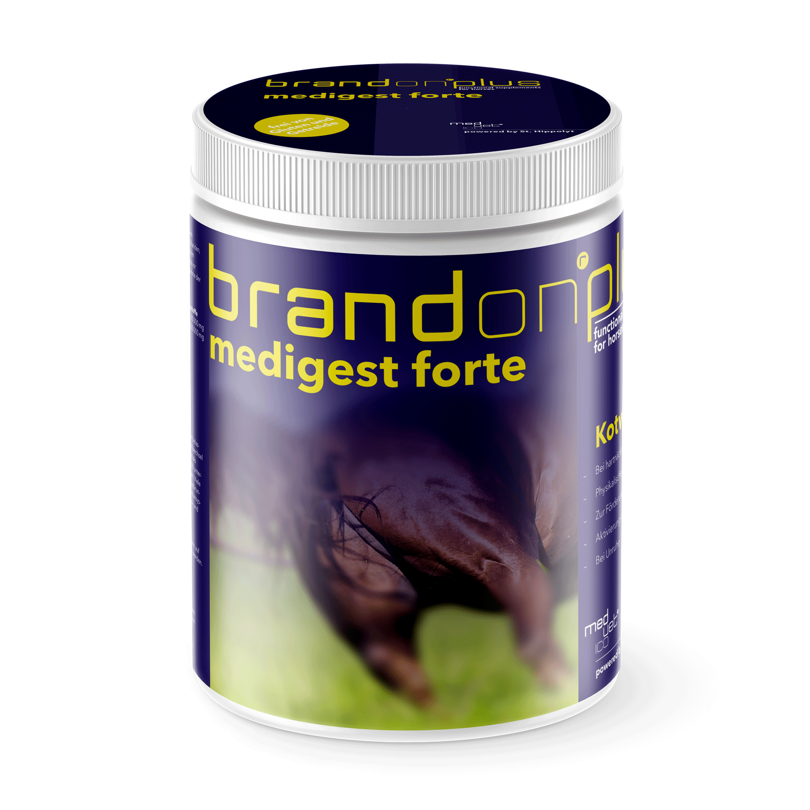 Über die Futteraufnahme sind Pferde einer Vielzahl verschiedener Giftstoffe, sogenannten Mycotoxinen (=Pilzgifte) ausgesetzt. BrandonPlus Medigest forte zeichnet sich durch einen hohen Gehalt an pflanzlichen Polysacchariden, funktionellen Faserstoffen, bioaktiven Zellwandbestandteilen von Milchsäurebakterien und Hefen und verschiedenen Tonmineralien aus.Die Lösung bei Kotwasser bei Pferden