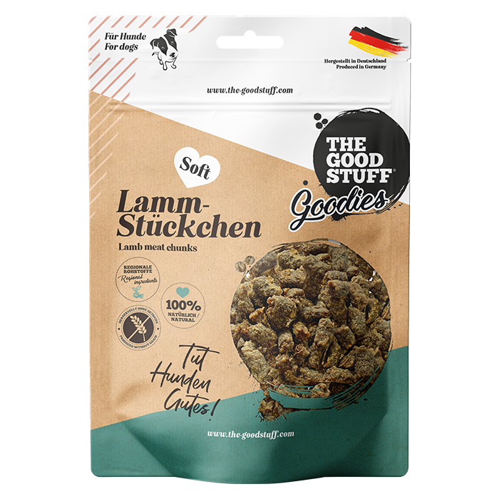 Ein Hundeleckerli der besonderen Art! Bestes Lammfleisch – schonend und nat?rlich getrocknet. Dieser softe Hundesnack ist ideal in hundgerechte, feine St?ckchen geformt und dadurch besonders angenehm zu kauen. Praktisch f?rs Training oder f?r unterwegs – Dank wiederverschlie?barem Beutel. Nat?rlich Single Protein, getreidefrei, ohne zugesetzten Zucker und ohne k?nstliche Aromen, Farb- oder Konservierungsstoffe!